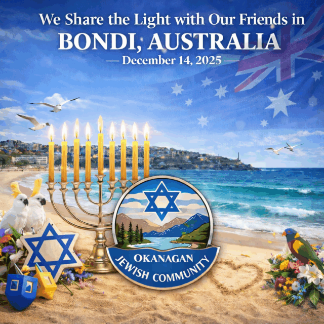 AM 1150’s Gary Barnes recently interviewed OJC members Jordan and David Spevakow on Early Edition. Hear about Jordan’s Bondi Beach experience on December 14th, and how the tragic events in Australia have prompted the Okanagan Jewish community to come together in solidarity.
